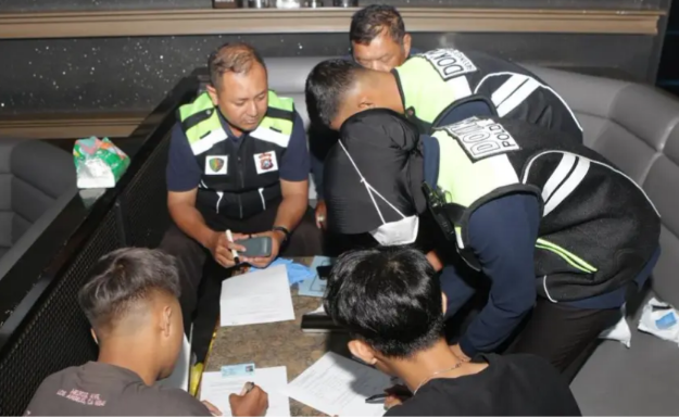 SURABAYA - Polda Jatim menggelar razia Narkotika ditempat hiburan malam di Surabaya, Jumat (10/4/2026). Terdapat…