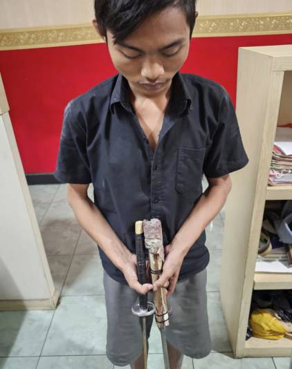 Tersangka Achmad Rinaldi akan dijerat sebagaimana dimaksud dalam Pasal 2 ayat (1) UU Darurat No. 12 Tahun 1951.(*)