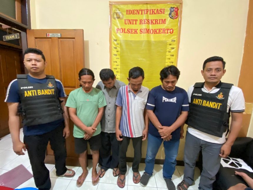 SURABAYA- Tengah asik sambil nenggak kppi, empat orang yang juga sedang bermain handphone didatangi tim anti Bandit Reskrim Polsek Simokerto Polrestabes Surabaya.