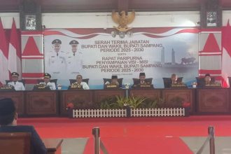 SAMPANG - Dewan Perwakilan Rakyat Daerah (DPRD) Kabupaten Sampang menggelar Rapat Paripurna dalam agenda Serah…