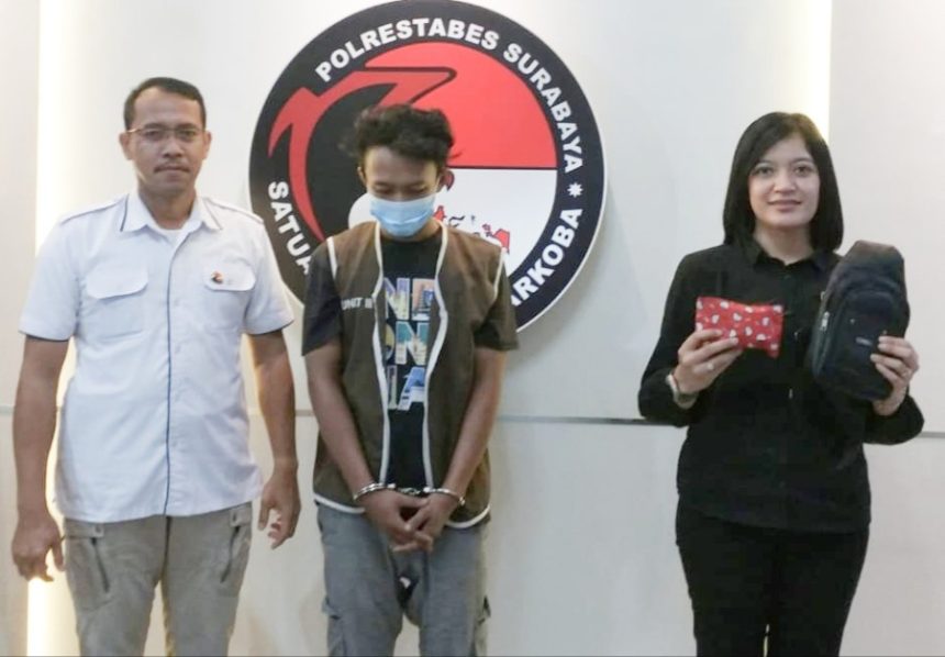 Tersangkanya, MFS (26) asal Jalan Simo Jawar Rt.02, Rw.01, Kel. Simomulyo, Kec. Sukomanunggal Surabaya. Polisi membekukny didepan pintu masuk Pergudangan Sri Mulya Jalan Margomulyo.