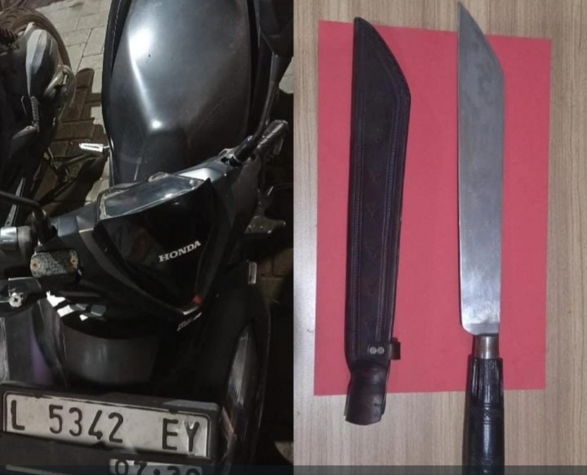 Kedua tersangka, R, 34, warga Jalan Dupak Masigit, Surabaya, dan MUHA, warga Jalan Kemayoran Baru, Surabaya. Polisi mengamankan kalung emas dan sebilah senjata tajam (sajam).