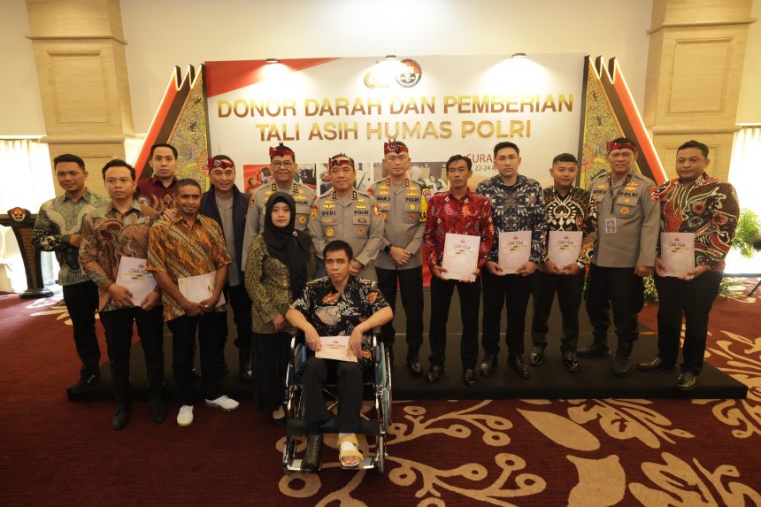 SURABAYA – Mabes Polri memberikan penghargaan dan tali asih kepada sejumlah petugas yang menjadi korban bom gereja di Surabaya yang terjadi pada Mei 2018 silam.