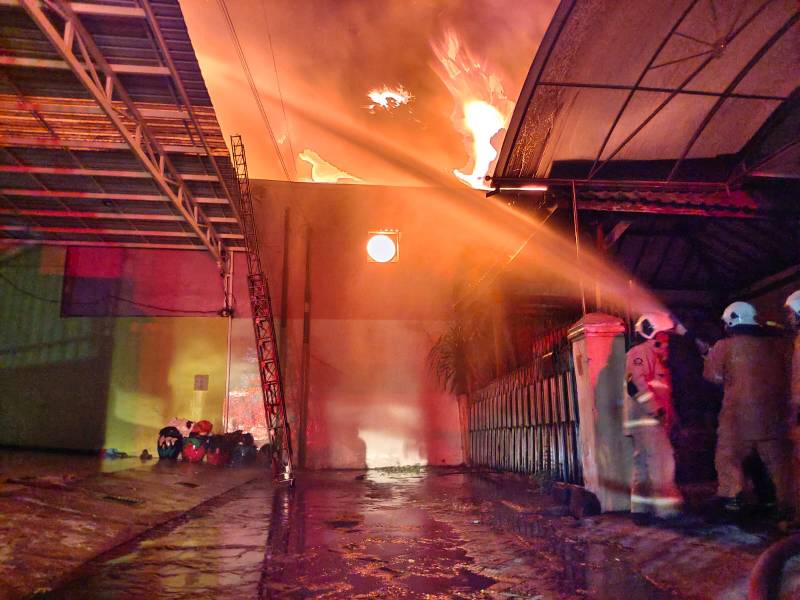 Pabrik di JalanKarang Asem XII No.3 Kel. Ploso Kec. Tambaksari, Kota Surabaya terbakar pukul 03.28 WIB.