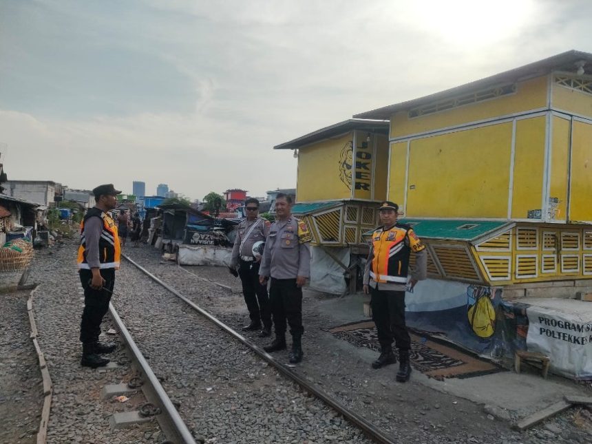 SURABAYA- Polsek Simokerto, Polrestabes Surabaya Patroli Presisi atas dugaan judi merpati di bantaran rel Kereta Api (KA) Donorejo, Simokerto, pada Senin (14/10/2024). Kegiatan tersebut dilakukan sebagai antisipasi adanya dugaan perjudian di sepanjang bantaran rel.