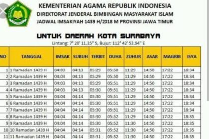 SURABAYA- Berikut jadwal imsak dan Subuh yang merupakan waktu penanda bagi umat muslim yang hendak berpuasa untuk menghentikan segala aktivitas…