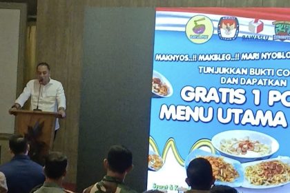 SURABAYA- Polrestabes Surabaya bersama Apkrindo mengajak masyarakat menggunakan hak pilihnya pada 14 Februari nanti. Usai mencoblos, masyarakat bisa makan gratis…