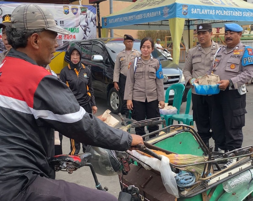 Ibu Rini salah satu pengendara motor yang tidak memakai helm sempat kaget saat di hentikan anggota Lantas Polsek Simokerto. “Saya kira akan ditilang namun hanya diberikan teguran dan malah diberi nasi bungkus jumat berkah,” katanya.