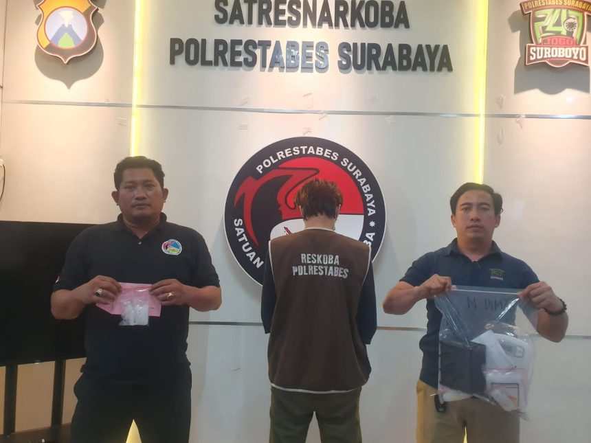 SURABAYA- Seorang pria terduga pengedar narkotika jenis sabu diringkus polisi dalam kamar kos Jalan Pumpungan Surabaya, pada Jumat 1 September 2023 sekira pukul 08.00 WIB.