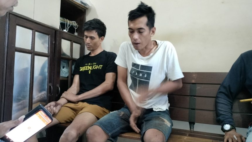 Dengan wajah babak belur usai dihakimi massa, Zainal dan Erlangga diamankan warga dan polisi ke balai Rw Keputih, Sukolilo Surabaya.