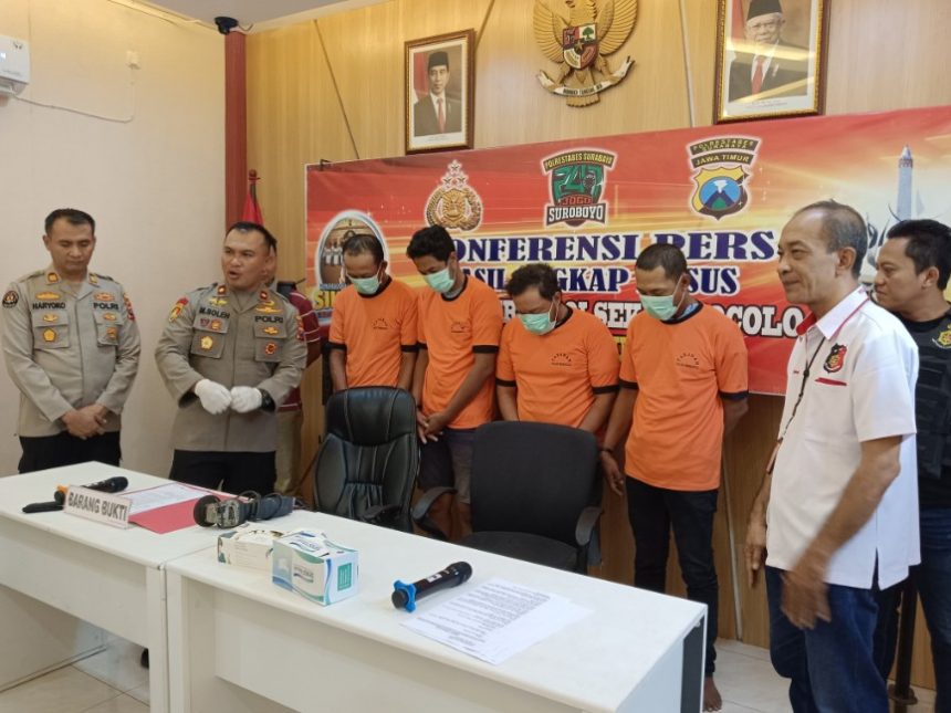 Tersangkanya, Bayu Tola Topan (31) asal Jalan Wonocolo Gg Benteng II Surabaya atau Kost Jalan Wonocolo Gg IV Surabaya, M. Cholish (43) asal Jalan Ngagel Rejo Utara 4, Hariono (41) asal Jalan Wonocolo 4, Danu Rizki (28) asal Jalan Wonocolo 3 Surabaya.